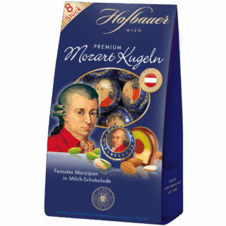 Zucker, Mandeln (25%), Kakaomasse, Kakaobutter, Invertzuckersirup, Haselnüsse (2%), Feuchthaltemittel (Sorbit, Invertase), Vollmilchpulver, Glucosesirup, Aromen, Palmfett, Magermilchpulver, Lactose, Butterreinfett, Spirituosen (Marillenbrand), Emulgator (Sojalecithin), Säuerungsmittel (Citronensäure), Gerstenmalzextrakt, Farbstoff (Paprikaextrakt).